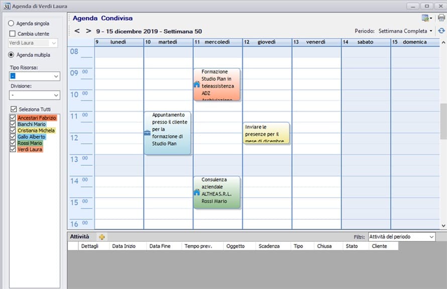 La funzionalità consente di gestire e pianificare le attività con una visualizzazione in agenda giornaliera, settimanale o mensile.