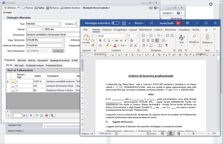 Per ogni pratica è possibile pianificare le attività da svolgere, predisporre la fatturazione a forfait o a consuntivo, controllare le prestazioni effettuate e la marginalità.