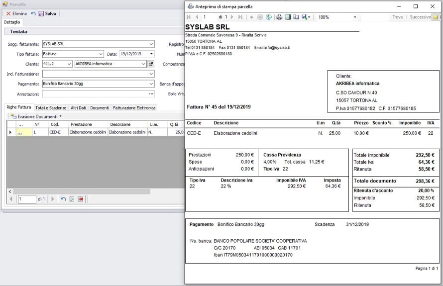 La funzionalità consente di emettere avvisi di parcella e fatture relative alle rate pianificate dei mandati o delle pratiche integrando con gli extra da fatturare, i fondi e le spese anticipate.